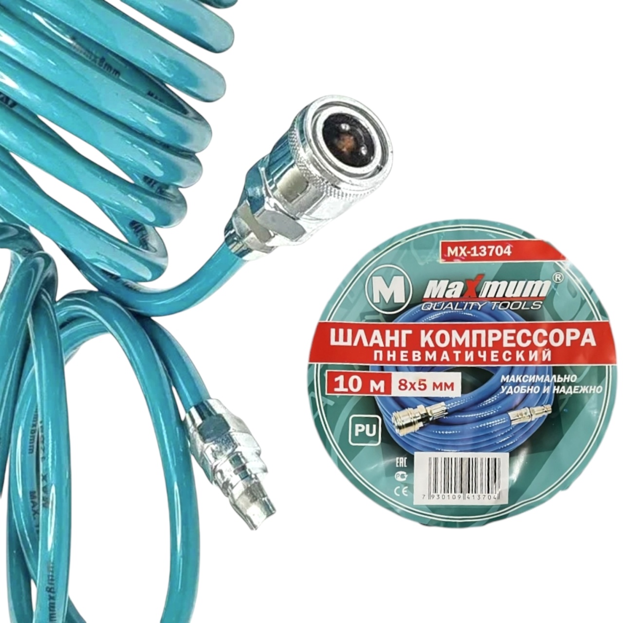 Шланг для компрессора 10 метров от "Maximum Quality Tools" выполнен из гиброкого полиуретана. Шланг оснащен фитингами рапид.