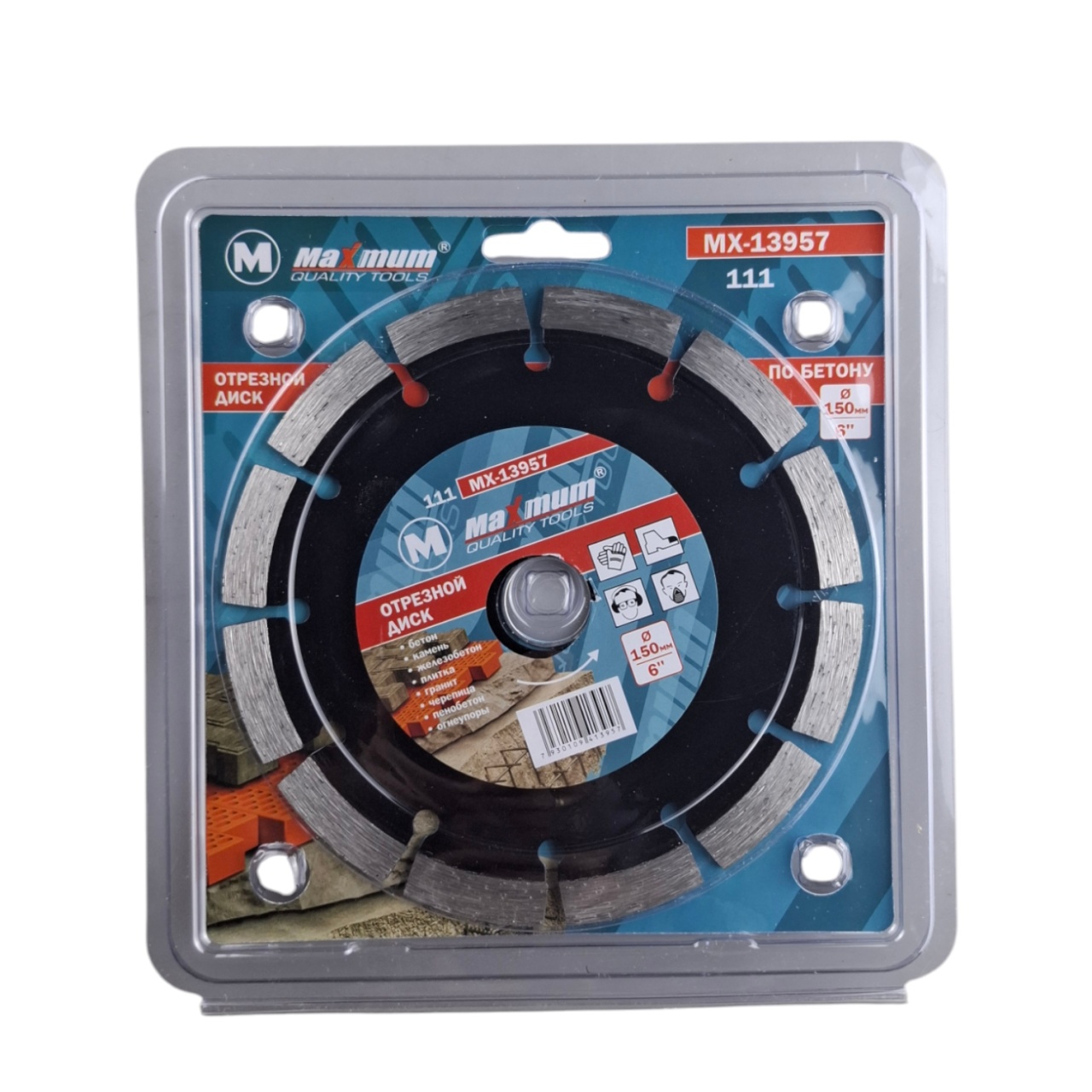 Надежный инструмент для сухой резки бетона, кирпича, гранита и других твердых материалов — алмазный отрезной диск MAXIMUM серии 111 диаметром 150 мм (6"). Отрезные диски от бренда «Maximum» — это профессиональное решение для высокой производительности и долговечности. Инструмент специально разработан для работы с углошлифовальными машинами (УШМ) на высоких оборотах (до 12200 об/мин). Этот сегментный диск обеспечивает чистый и быстрый рез без заклинивания.