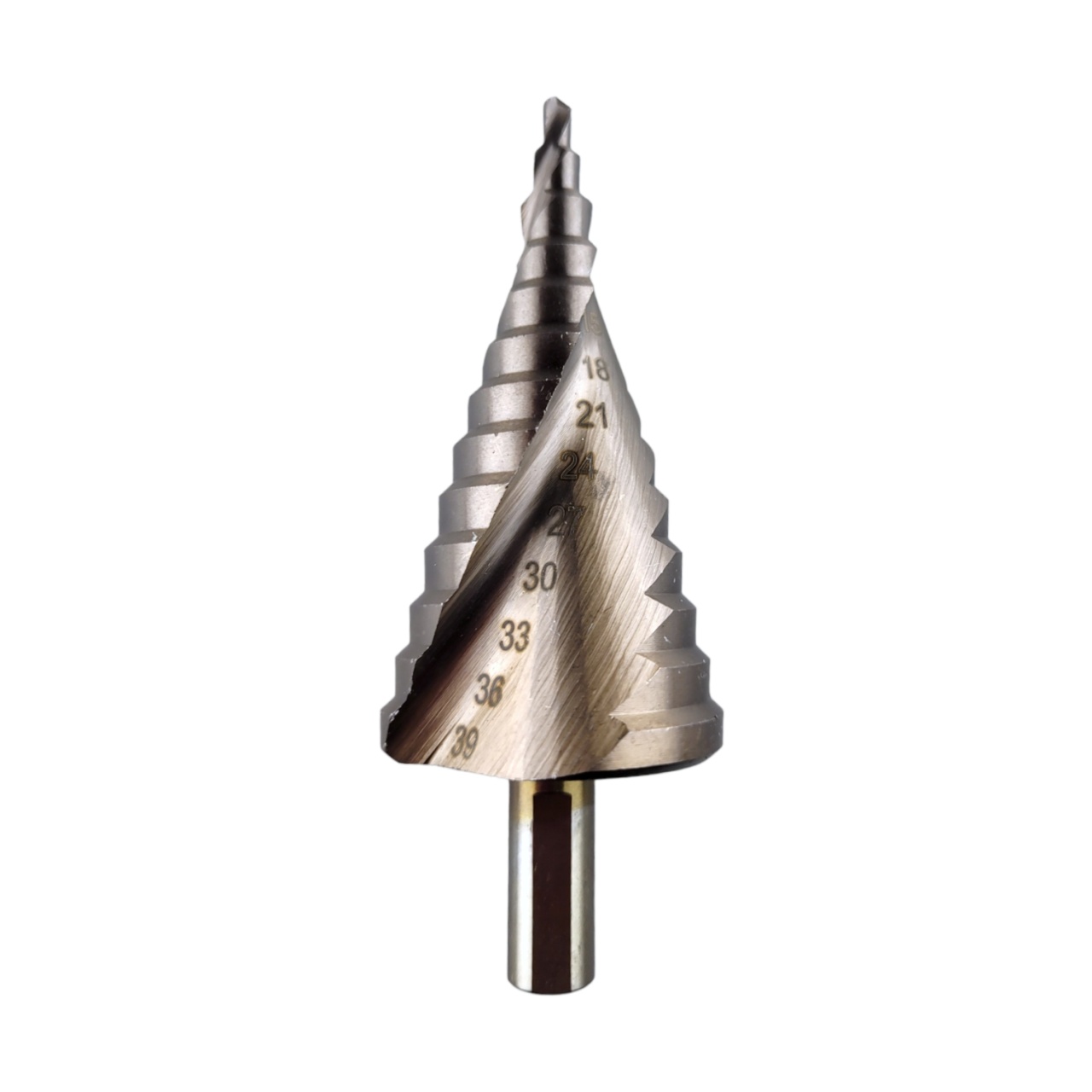 Сверло ступенчатое по металлу 4 - 39 мм изготовлено из высоколегированной стали HSS 4241 с износостойким антикоррозийным покрытием. Режущая кромка конусного сверла 35° предназначена для получения отверстий в металле различного диаметра без перестановки режущего инструмента. Сверло имеет трехгранный хвостовик и 15 ступеней с шагом в 3 мм, которые помогают создать оптимальный и точный замер. Такая специфическая спиралевидная конструкция усиливает режущую способность и существенно увеличивает плавность и скорость обработки металла. Используется также для шлифования уже готового отверстия. Вы сможете быстро убрать всю стружку по краям и сделать идеально круглое отверстие без использования УШМ и надфиля.